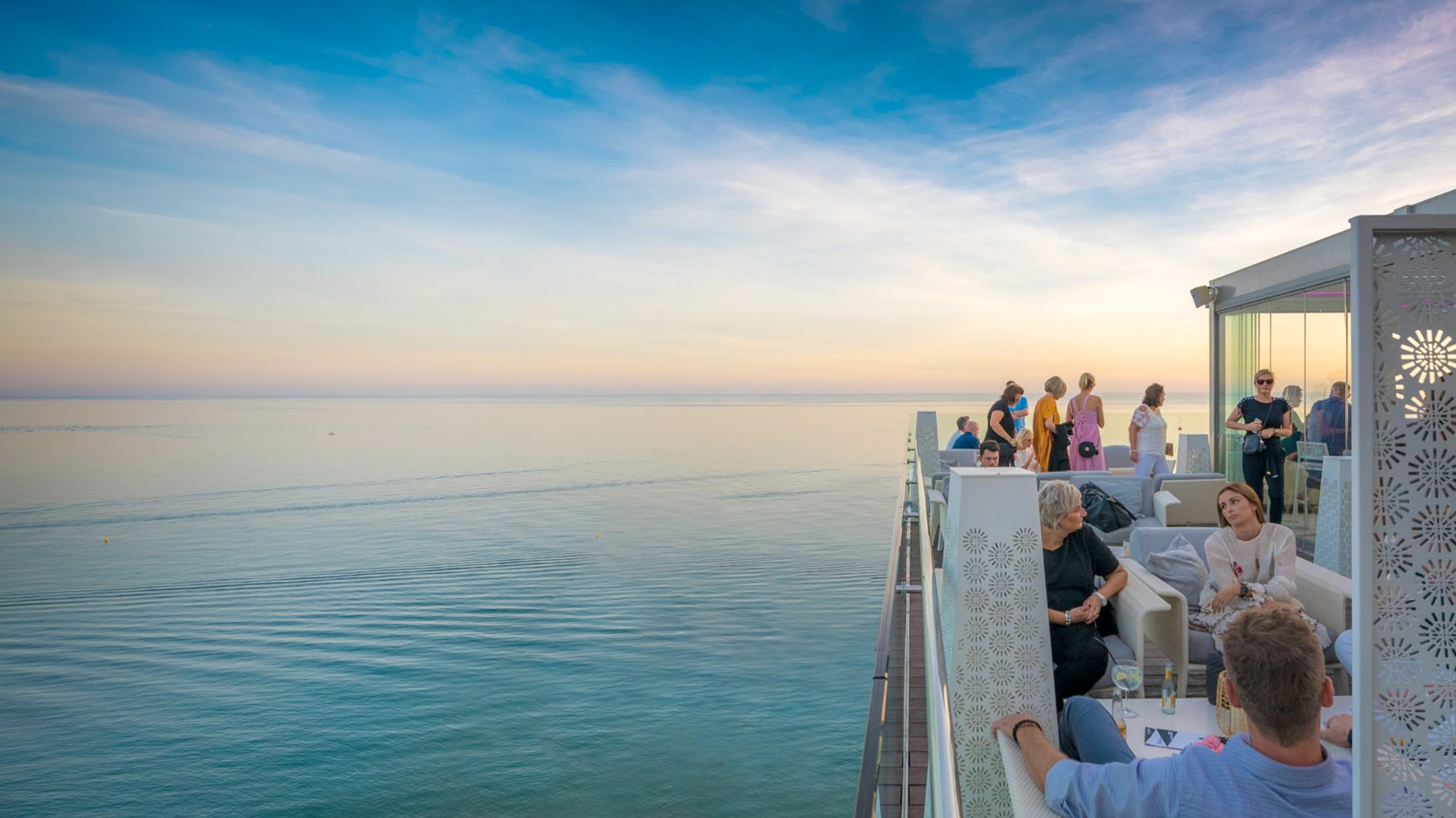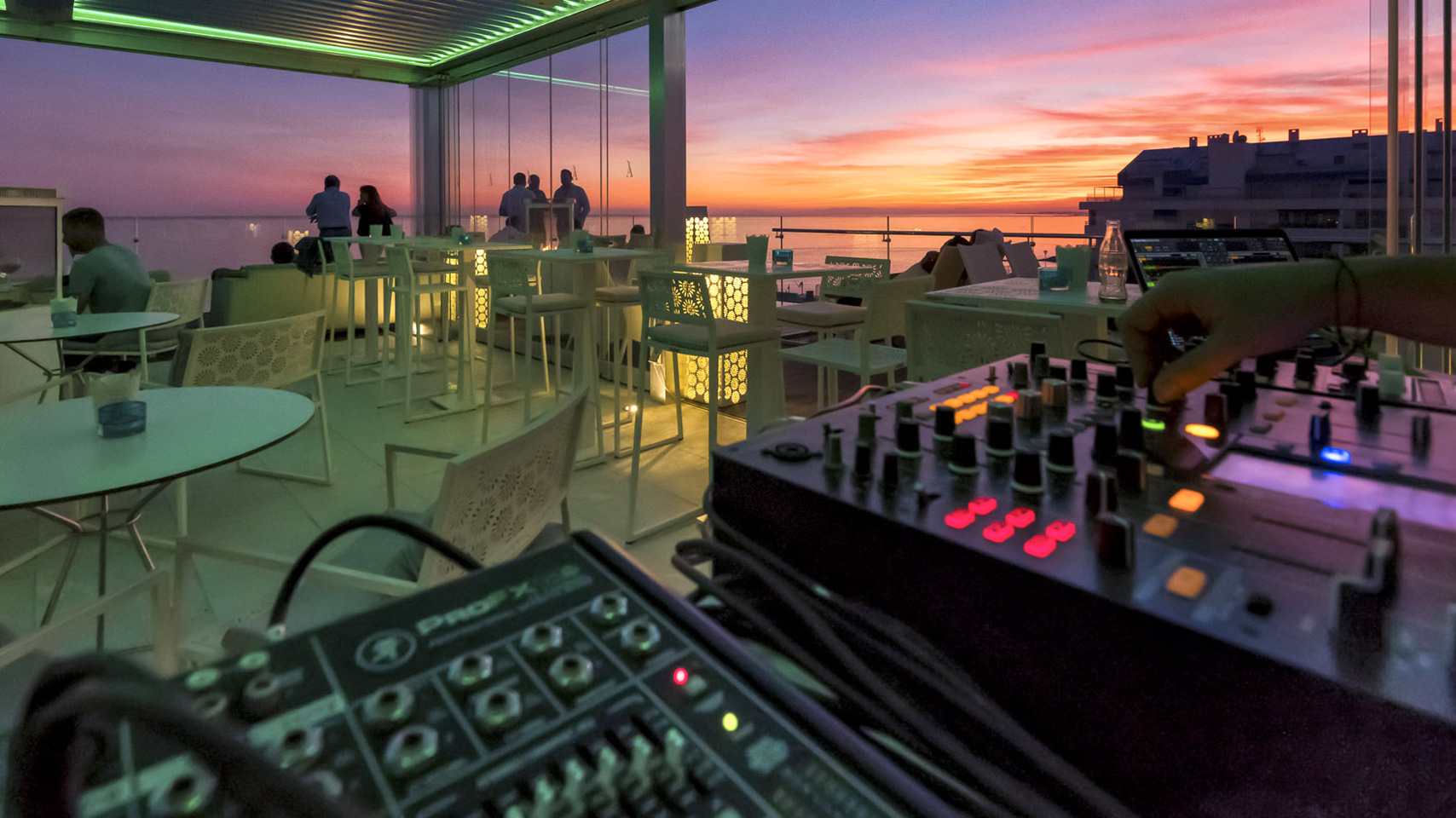 Des DJs en live installent l’ambiance au coucher du soleil.
